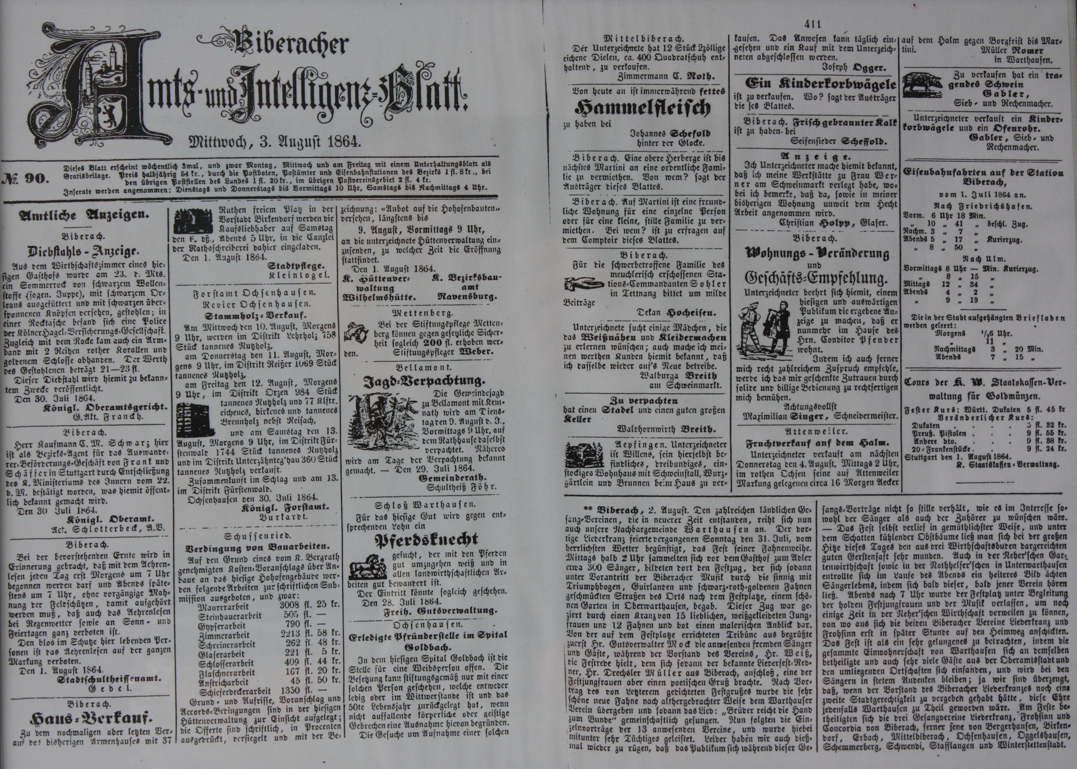 Der Liederkranz wurde im Jahr 1864 gegründet und ist somit der älteste Verein der Gemeinde. Diese Vereinsgründung ist durch einen Auszug aus dem Biberacher Amts- und Intelligenzblatt vom 3. August 1864 verbürgt.