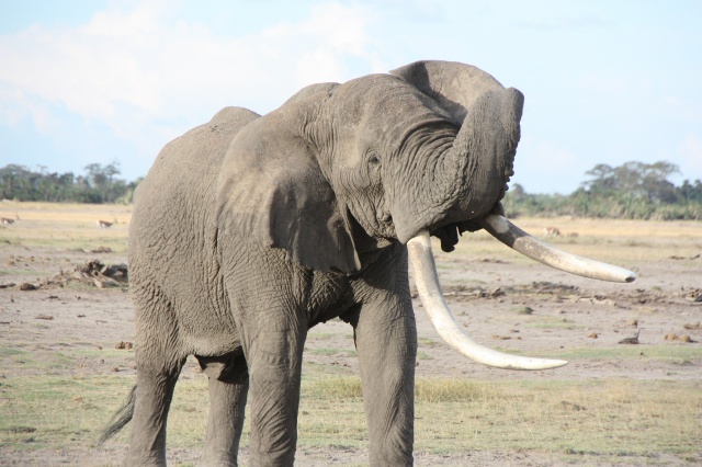 Ein Elefantenbulle mit unglaublichen Stoßzähnen