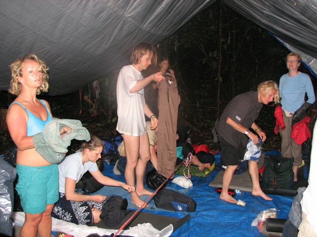 Übernachtung mitten im Dschungel. Hoffentlich hat man noch ein paar trockene Sachen